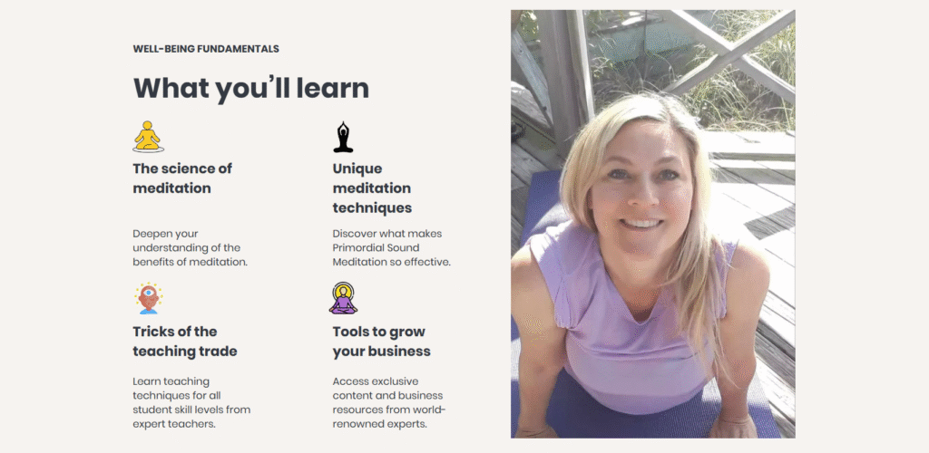 Develop your personal teaching approach in our 3-months, Meditation Certification program. Learn to teach all skill levels and stock up on tools for building curriculums and presentations. Engage with course faculty in live Q&A sessions and robust community forum discussions. Working in small online study groups with peers, you’ll also get hands-on experience in sharing philosophy and technique. Graduate with an internationally recognized certification, access to the newest meditation research and studies, and exclusive teaching and business development resources.
